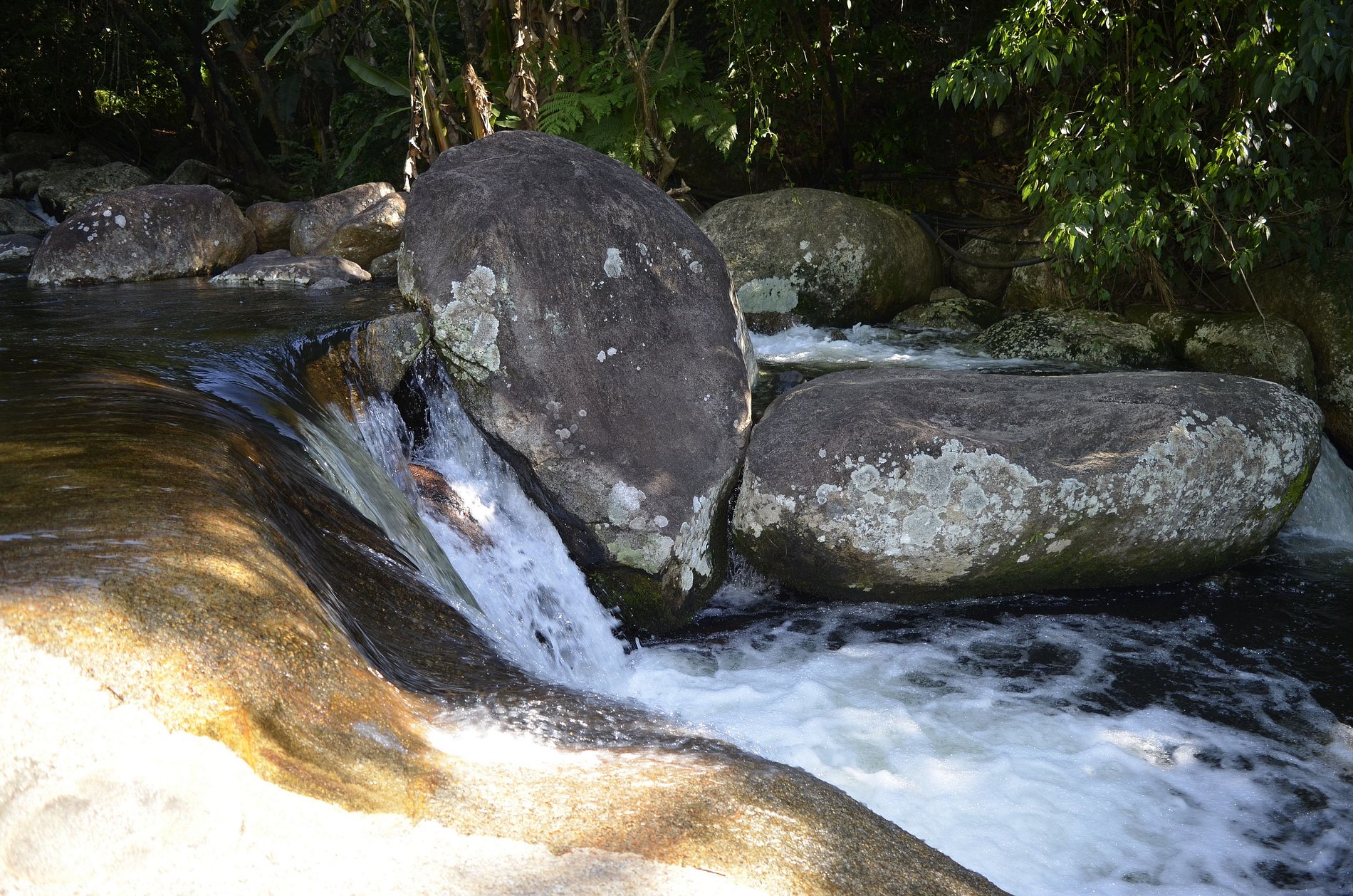 Ilhabela es un archipiélago y estamos en la isla principal, región sur, a la derecha de los ferries, a 8 km. El barrio se llama oficialmente Ribeirão pero es más conocido como Bexiga. Estamos al lado de Cachoeira do Paquetá y cerca de las playas Grande, Julião, Veloso y Curral (las más populares de la isla). Tenemos supermercados y farmacia a tres cuadras. Alquilamos suites para recibir huéspedes que pretendemos que sean nuestros nuevos amigos.