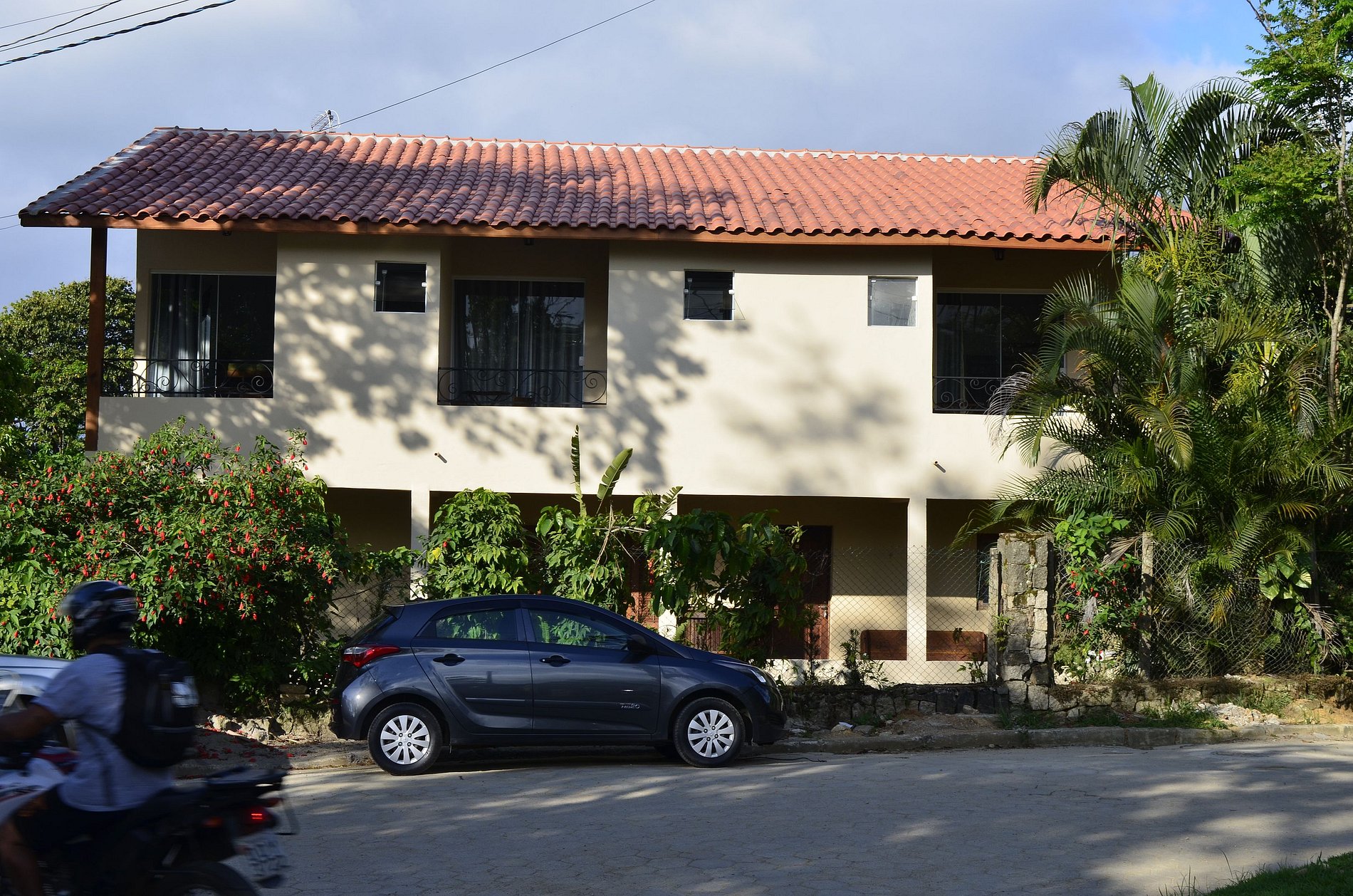 Os hóspedes ficam de posse das chaves e tem liberdade para sair e chegar a qualquer momento após instalados. As tomadas são todas 110V, exceto a do micro ondas onde se mantém conectado. As tres chaves são a da suíte, da grade do corredor e a do portão do estacionamento. No corredor de acesso temos um console onde temos pamfletos com informações sobre allimentação delivery, passeios, taxis etc..